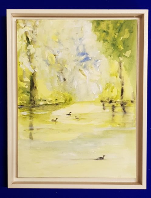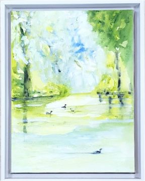 Entitled 'The Lake' 68cm x 45cm floating white frame