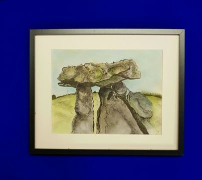 Entitled 'Dolmen at St Lythans' 40cm x 53cm mounted & glazed in black frame