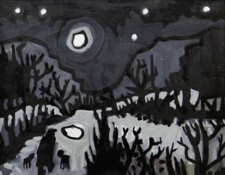 KARL DAVIES oil on board - entitled verso on Albany Gallery label 'Farmer and Moon 2', signed verso and dated 2009, 29.5 x 36cms
