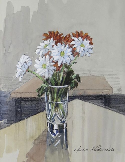 MAURICE GREENWOOD watercolour - entitled 'Flowers' verso, signed, 39 x 30cms