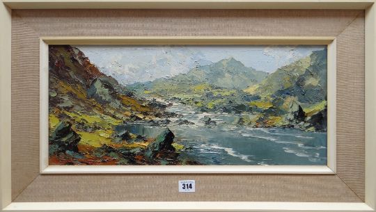 CHARLES WYATT WARREN oil on board - entitled verso 'River Llugwy', signed, 23 x 53cms