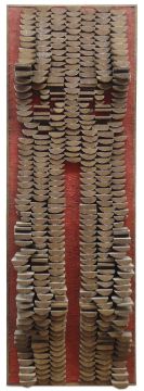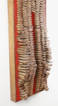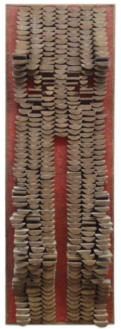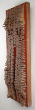 ARTHUR GIARDELLI construction from segments of wooden life-boat oars applied to board - contours of a lower torso, entitled verso 'Venus Anadyomene', monogrammed verso, 34 x 32cms