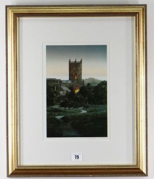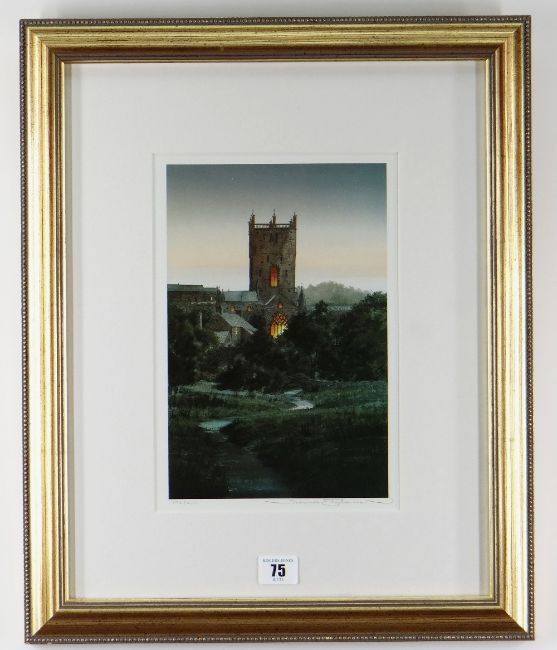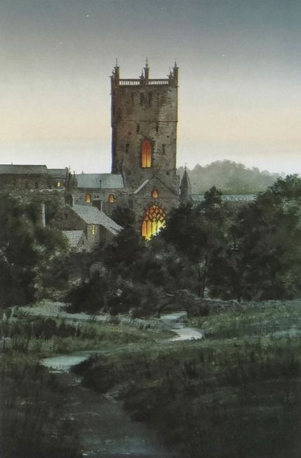 NAOMI TYDEMAN limited edition (172/300) colour print - St David's Cathedral at dusk, signed, 28.5 x 19.5cms