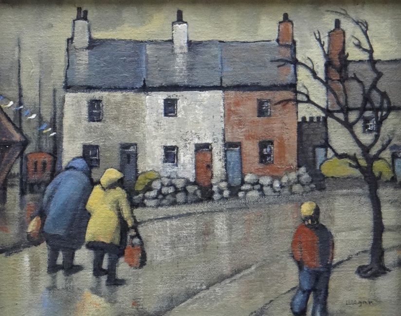 MEGAN JONES oil on board - entitled verso 'Hen Dai a Ty Capel Tarsis, Maes, Pwllheli' (Old Houses and Chapel House, Maes, Pwllheli', signed, 24 x 29cms