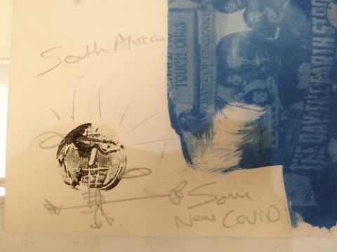 NEALE HOWELLS handmade cyanotype print with homemade negatives and pencil - entitled 'New Variant II', signed and dated 2021, 73 x 56cms
