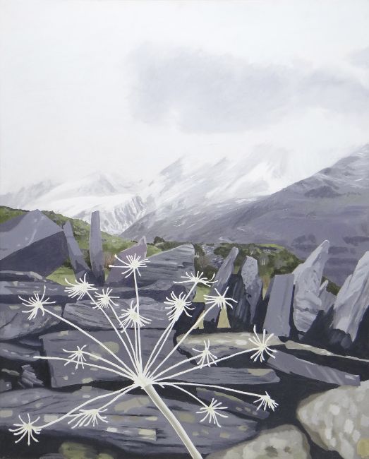 HUW JONES large oil on canvas - Eryri landscape in winter, entitled verso 'Cow Parsley Skeleton', signed verso and dated 2005, 120 x 100cms
