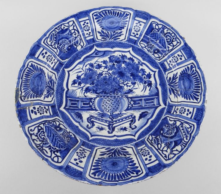 Condition Report: broken and reglued, rim fritted. rim section old restoration.