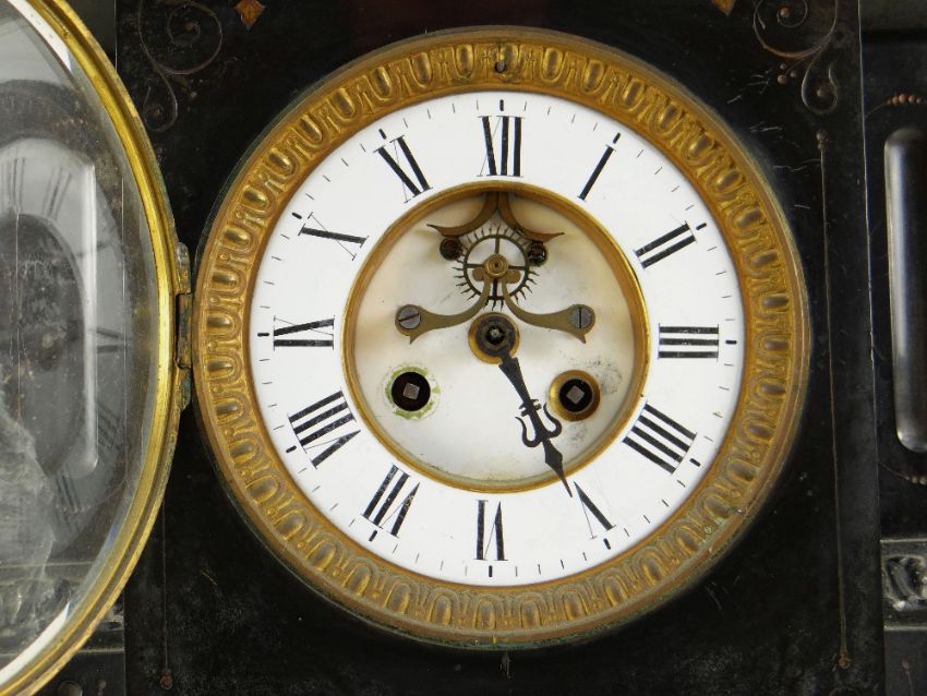 Condition Report: one hand missing, chips to enamel base loose, surface dirt.