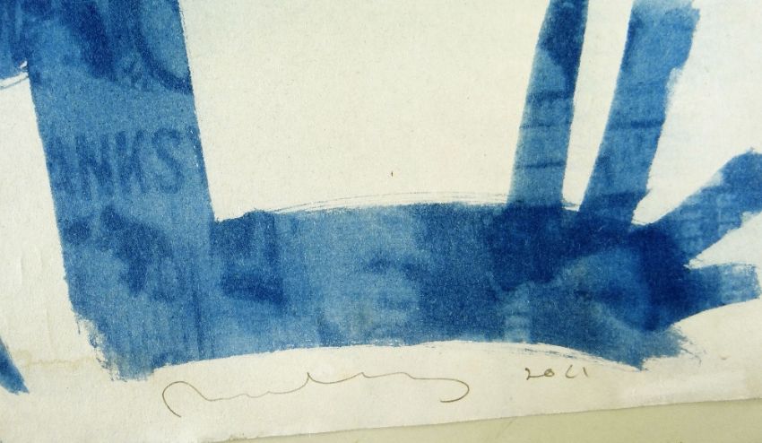 NEALE HOWELLS handmade cyanotype print with homemade negatives - entitled 'New Variant I', signed and dated 2021, 73 x 56cms