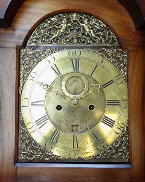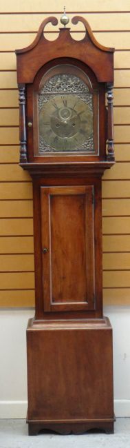 ANTIQUE MAHOGANY 8-DAY LONGCASE CLOCK, dial signed Thos Williams Haverfordwest, 11-inch brass roman dial with subsidiary seconds and calendar aperture, 223cms high