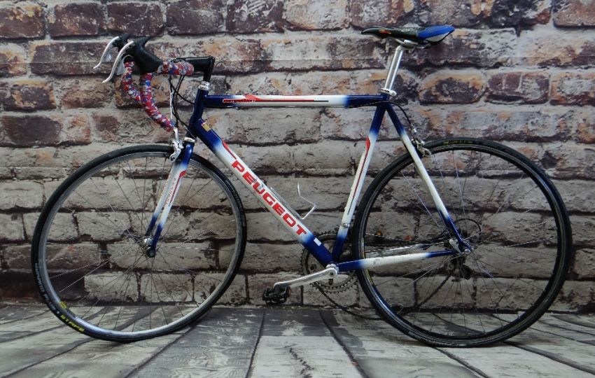 PEUGEOT 7000 COMPETITION RACING BICYCLE, blue and white ombre 23" frame, Campagnolo veloce 9-speed gears
