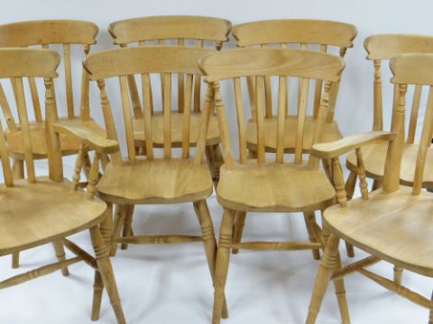 SET OF EIGHT MODERN BEECH KITCHEN CHAIRS, including two arm chairs (8)