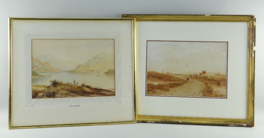 ANTHONY VANDYKE COPLEY FIELDING (1788-1855) watercolours - On Lake Windermere; signed and dated 1830, 22 x 32cms, and another by the same hand of a meadow (2)