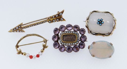 Condition Report: chip to back of opal, no stones missing, surface wear and light scratching overall
