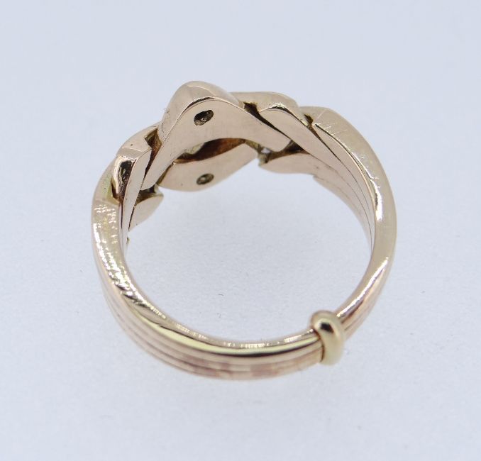 YELLOW METAL DIAMOND CROSS OVER RING, ring size K, 6.4gms, in black square ring box