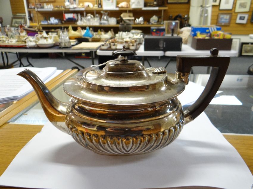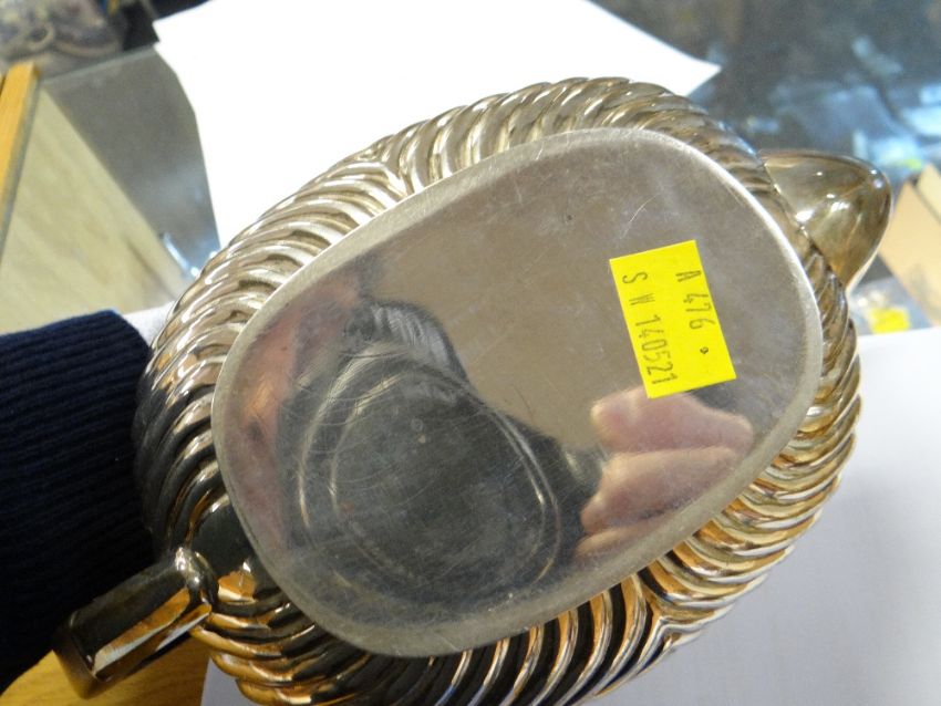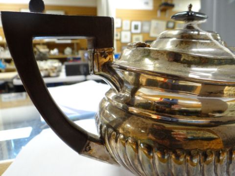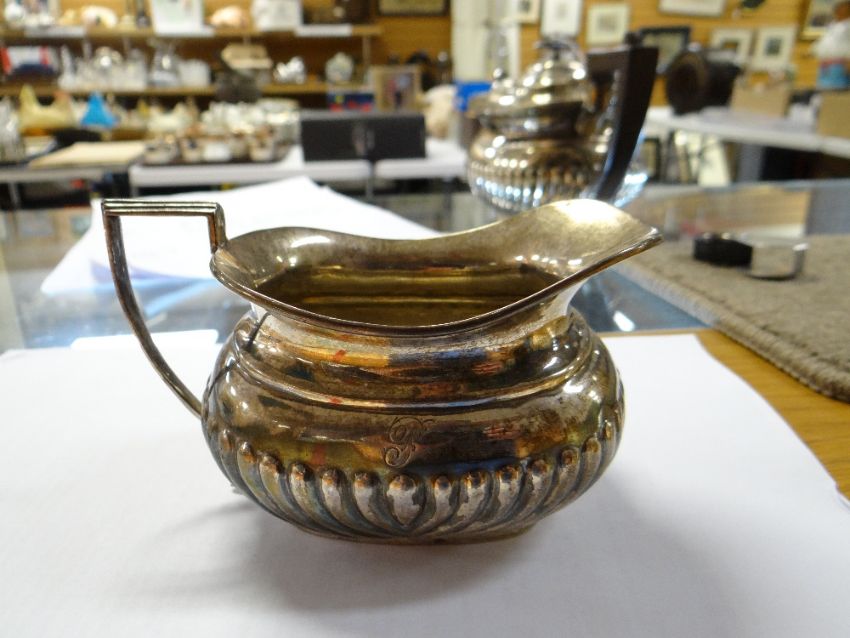 EDWARD VII SILVER OVAL THREE-PIECE TEASET, BIRMINGHAM 1902, MAKER L&S, with half gadrooned oval bodies, approximate total gross weight 31t.oz