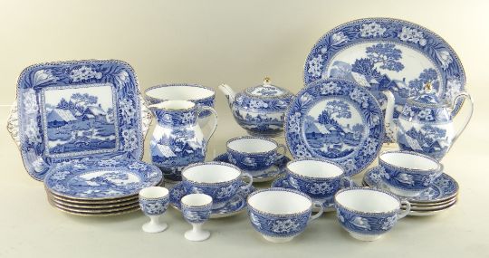 Condition Report: oval platter with chips, egg cup stained, other minor cracks, teapot lid may be mismatched.