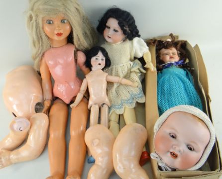 COLLECTION OF FIVE VARIOUS VINTAGE DOLLS including large Armand Marseille 351 bisque head doll, sleep eyes, open mouth and teeth, composition body together with Italian 1960s walking doll, ABG 1361 German bisque head doll with jointed composition body, Heubach Koppelsdorf 250 bisque headed doll with jointed composition body and 1960s composition doll (5)