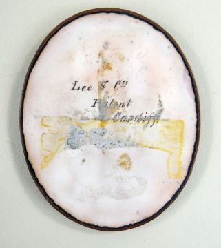 Condition Report: Lee & Co. possibly a phtotgrapher using a patent to tansfer a photographic image to an enamelled copper plate. Both with sellotape adhesive and bluetack residue behind, both with rim chips to edge.