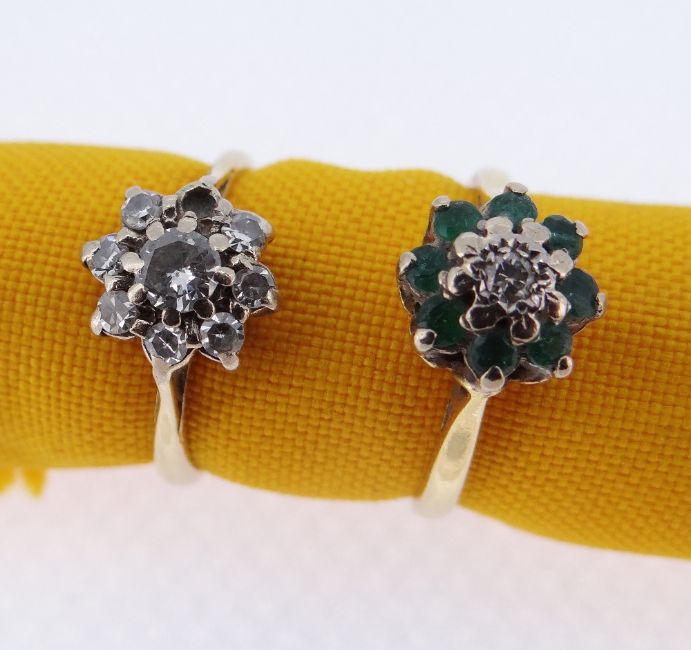 Condition Report: diamond ring has one stone missing, surface wear and light scratching overall