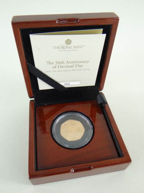 ROYAL MINT THE 50TH ANNIVERSARY OF DECIMAL DAY 2021 UK 50P GOLD PROOF COIN, in original box with Certificate of Authenticity, no. 388