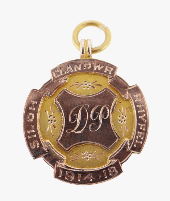 9CT GOLD PENDANT engraved with initials and date 1914-18, in vintage H. Samuel vintage box, 5.4gms