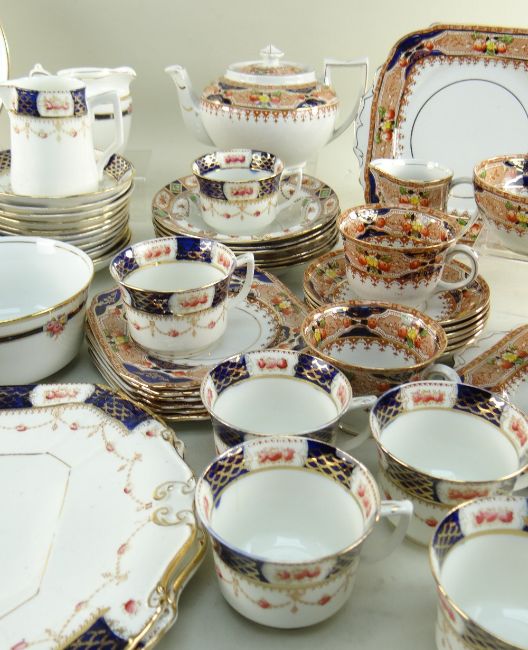 THREE EARLY 20TH CENTURY BONE CHINA PART TEASETS all printed with roses and in-filled in colour, one set with a teapot