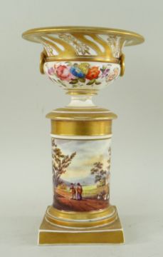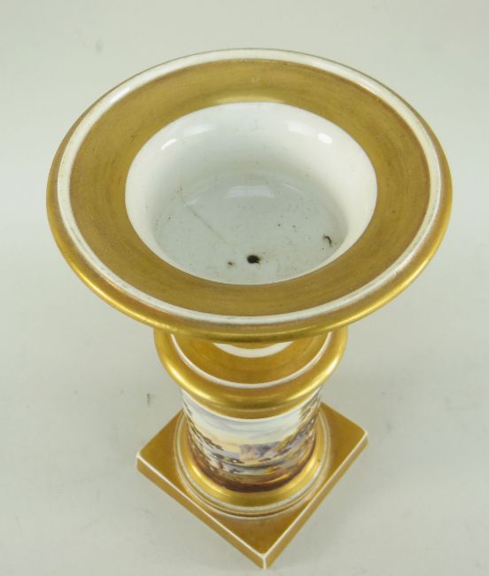 Condition: restored at the socle, crack, paint flakes to landscape.