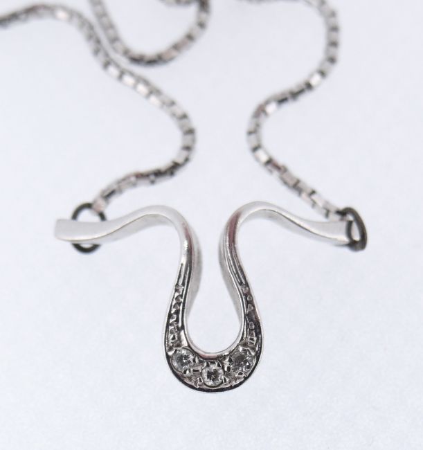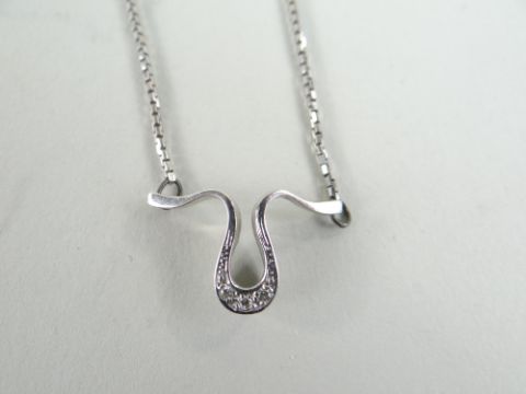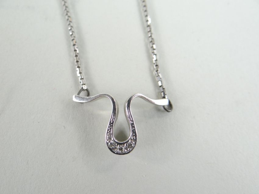 9CT WHITE GOLD DIAMOND SET PENDANT ON CHAIN, 40cms long, 5.1gms, in black jewellery box