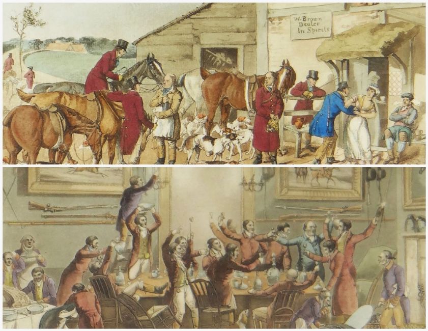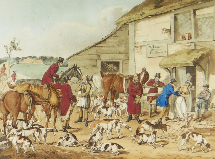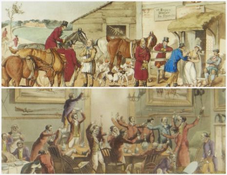 AFTER HENRY ALKEN two hand coloured aquatint engravings - 'The Refreshment' and 'The Toast', in gilt lined Hogarth frames, (I) 23 x 31cms (2)
