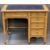 NEAT VINTAGE OAK DESK having inset writing surface over a single drawer with open ended knee section and a right side bank of four drawers on tapering supports with brown pot castors, 75.5cms H, 91.5cms W, 51cms D