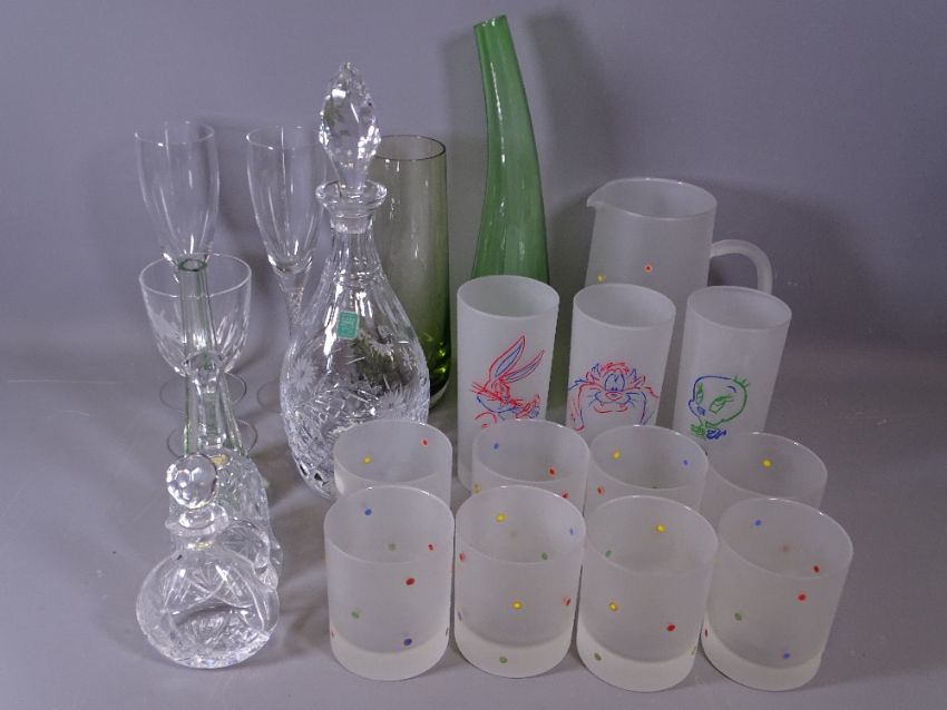 EDINBURGH CRYSTAL DECANTER and other glassware including cartoon themed lemonade set