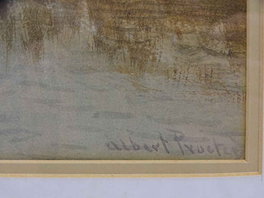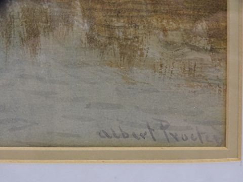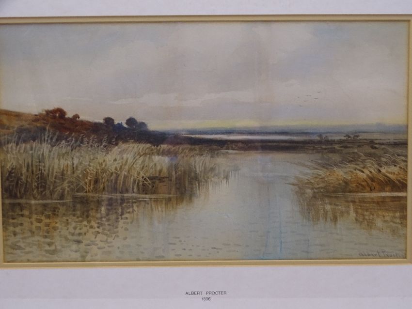 ALBERT PROCTER 1864 - 1909, watercolour 1896 - Marshland with distant gulls in flight, 27 x 46cms