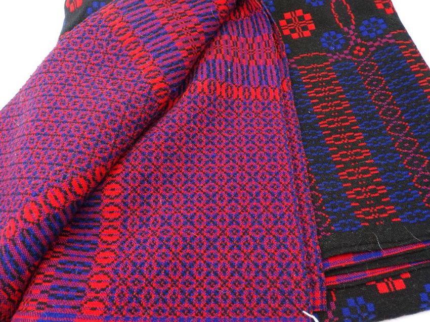 TRADITIONAL WELSH WOOL BLANKET black, blue and red reversible tone pattern, 230 x 195cms