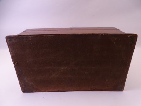 VICTORIAN MAHOGANY DESKTOP STATIONERY BOX having twin slope fronted doors opening to reveal a fitted interior, 32.5cms H, 41cms W, 23.5cms D