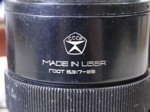 PHOTOGRAPHY - Zenit-e cased camera, Minolta X-700, light meter and a USSR made long lens marked 'CCCPROCT5.317-69' and a cased set of field glasses