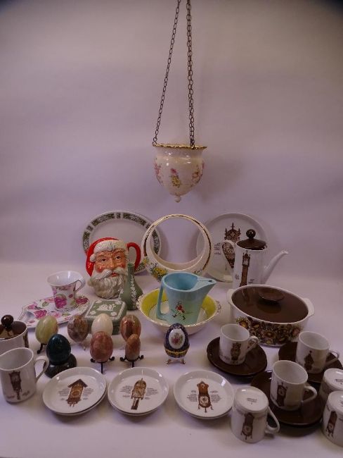 MITTERTICH PORCELAIN COFFEE & DINNERWARE and other mixed pottery and porcelain including a Royal Doulton Santa Claus character jug, Wedgwood Jasperware, Wade Johnny Walker water jug, porcelain and mineral display eggs ETC