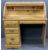 MODERN PINE TAMBOUR FRONT KNEE-HOLE DESK the top interior with an arrangement of pigeonholes over a single frieze drawer and panel end and three left hand drawers to the front on a plinth base, 109.5cms H, 104cms W, 51cms D