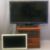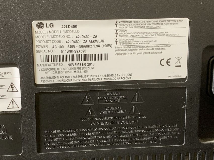 VISUAL ENTERTAINMENT GROUP, FOUR ITEMS to include a wall mount Toshiba LCD tv in white, LG freestanding flatscreen tv with 42inch screen, Humax Digi box, all with remote controls along with a reproduction mahogany drop-down front entertainment stand, 55cms H, 60cms W, 46cms D E/T