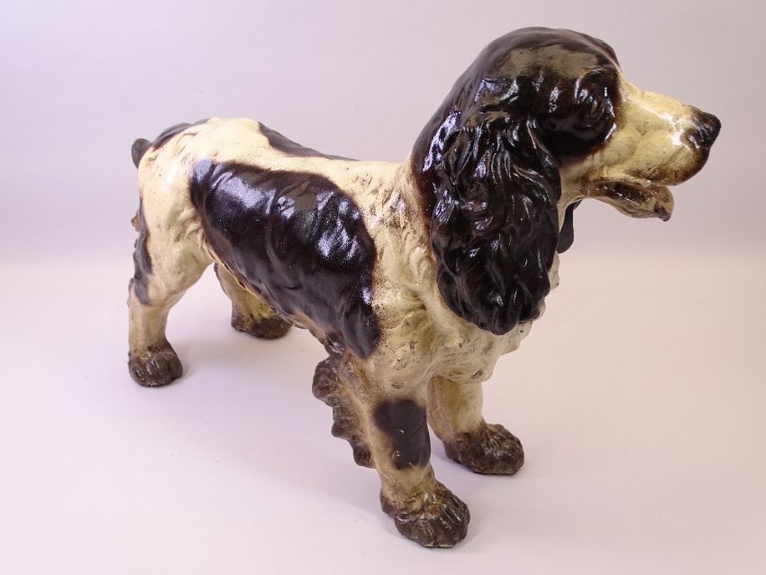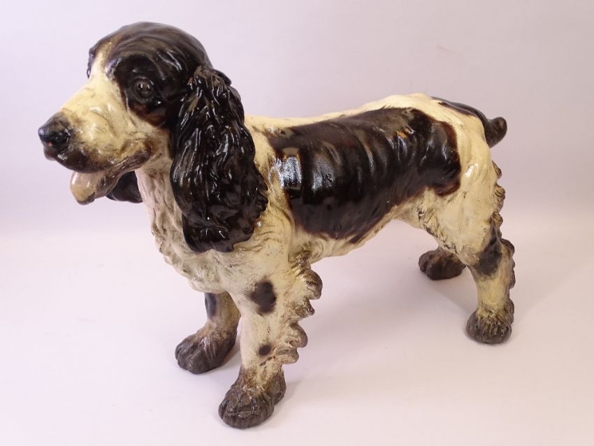 VICTORIAN PLASTER MODEL OF A COCKER SPANIEL, 36cms H,46cms L