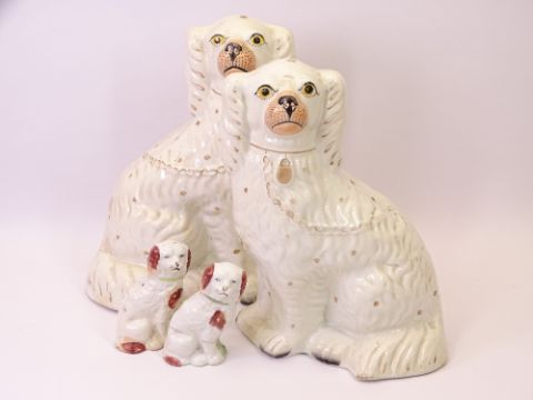 STAFFORDSHIRE FLATBACKS including Wesley, also two pairs of Comforter Dogs