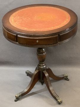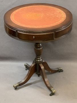 REPRODUCTION DRUM TABLE with side drawers on tripod support, 60cms H, 50cms diameter