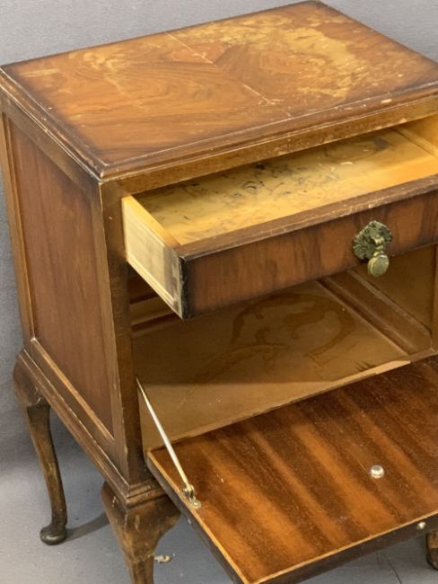 EDWARDIAN SIDE CABINET, 72cms H, 50cms W, 38cms D and a tapestry firescreen
