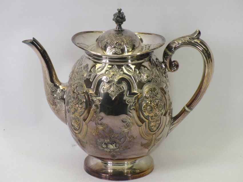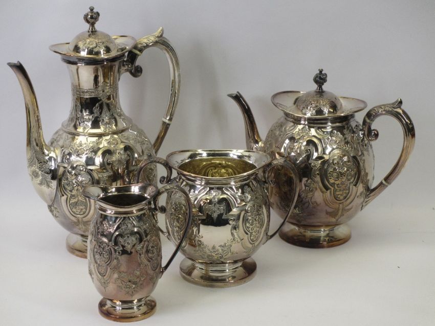 EPNS 4 PIECE TEA SERVICE with extensive embossed detail