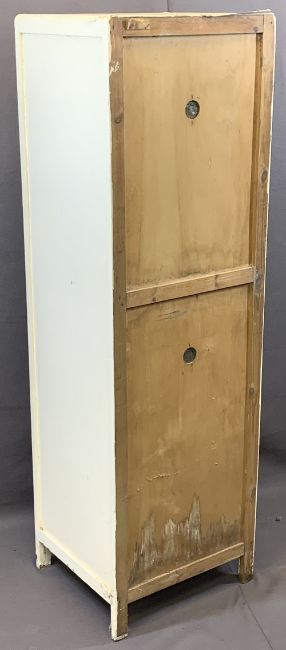 CIRCA 1950's KITCHEN FOOD CUPBOARD having two doors, 140 x 43 x 41cms and a single drawer Eastern style chest