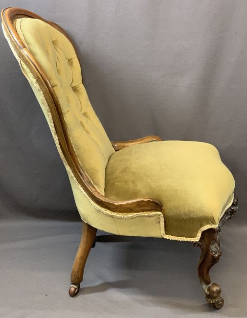 LADY'S MAHOGANY VICTORIAN CHAIR WITH BUTTON BACK, 94cms H, 58cms W, 42cms seat depth