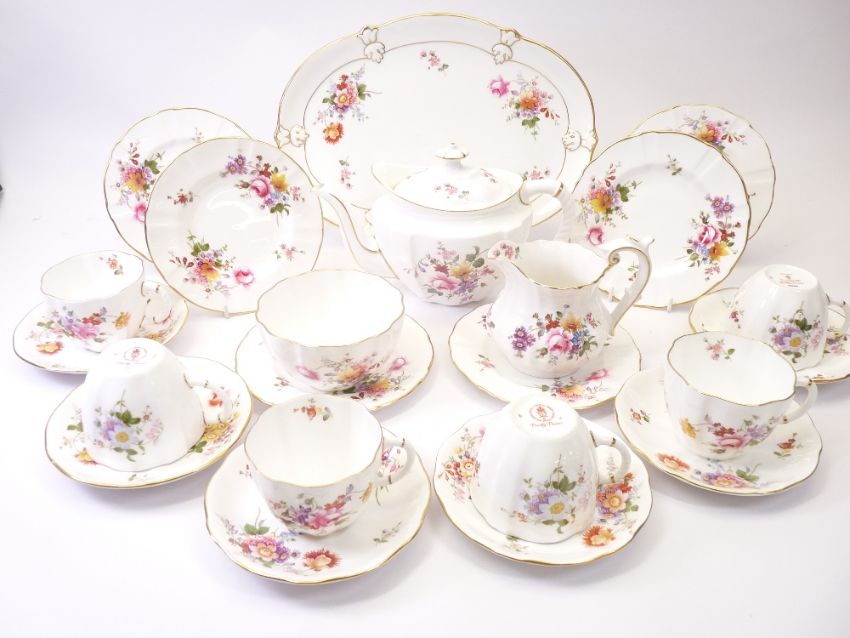 ROYAL CROWN DERBY - 'Derby Posies' teaware including oval plate, 32.5cms L, approximately 25 pieces