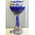 MAJOLICA STYLE JARDINERE ON STAND in Cobalt Blue with stylised flowers in relief, 93cms overall H, 35cms diameter the jardiniere (A/F), (15 x 10cms piece needs regluing to the base)