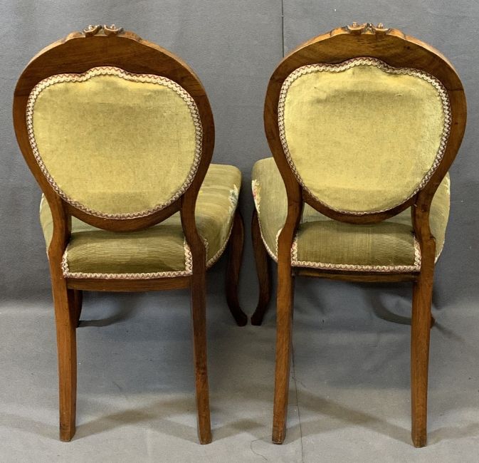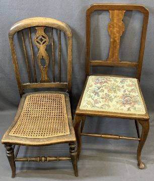 DRAWING ROOM CHAIRS with shield backs and beadwork upholstery, and two other vintage chairs