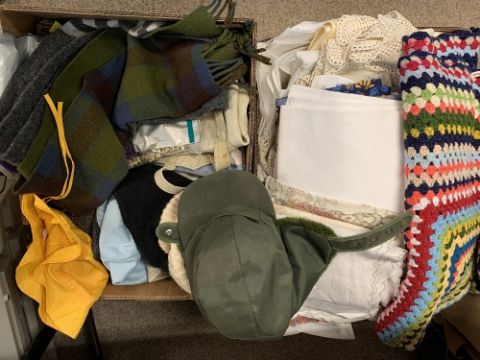 LINEN & CLOTHING including Lecturer's robe by Ede & Ravenscroft, vintage boating blazer and other items